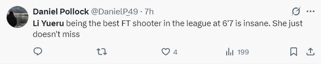美记:身高6尺7的李月汝竟然成为联盟最好的罚球手,这简直不可思议,她的罚球基本功太出色。