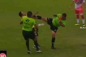 体育资讯03月31日讯 据太阳报报道,在南美洲秘鲁杯的一场比赛中,当值主裁成功一脚把想要袭击他的球迷踢翻。